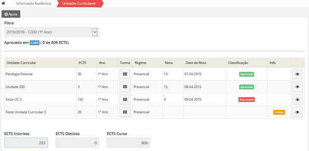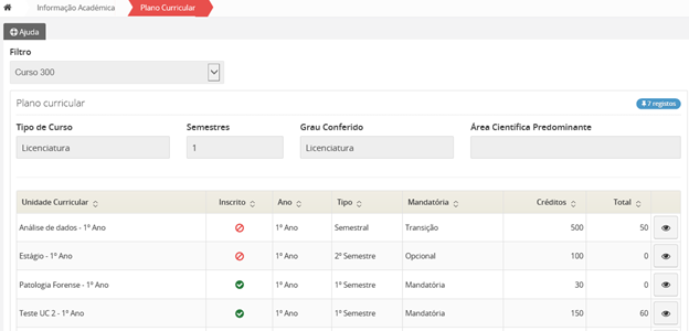 Ao aceder à Área de Gestão de Consulta de Lista de Professores, poderá consultar a lista de todos os Professores associados às unidades curriculares.