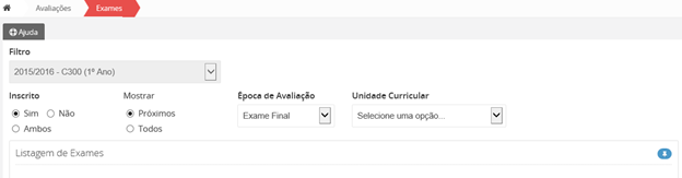 Caso não tenha nenhuma lista disponível de informações nesta secção, utilize os campos de filtragem: Notas de Momentos de Avaliação ou Notas finais de época, Ano Letivo, Época de Avaliação e Unidade Curricular. Se a pesquisa com filtros não devolver nenhum resultado, ou seja uma lista vazia, significa que ainda não lhe foi atribuída nenhuma nota de avaliação.