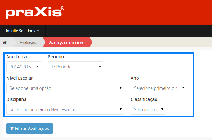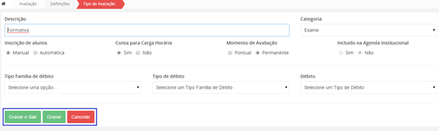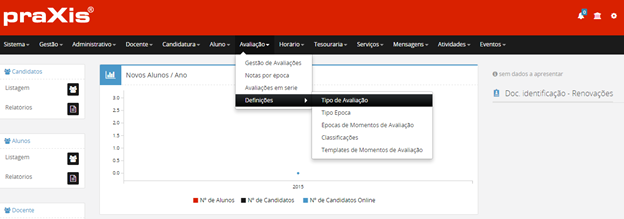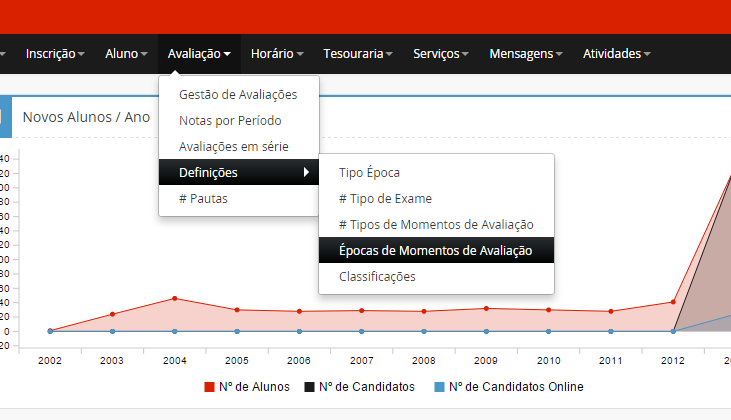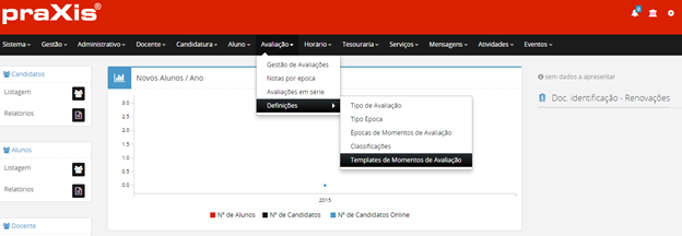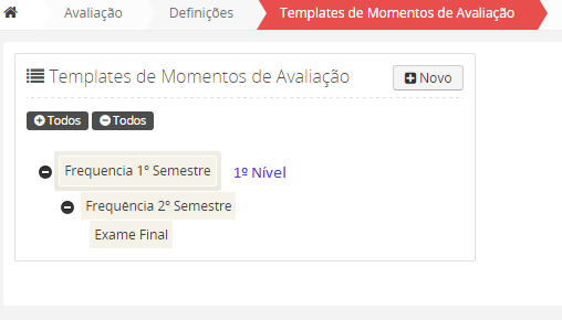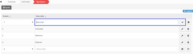 Para adicionar uma nova Época de Momentos de Avaliação, deverá escolher a opção .