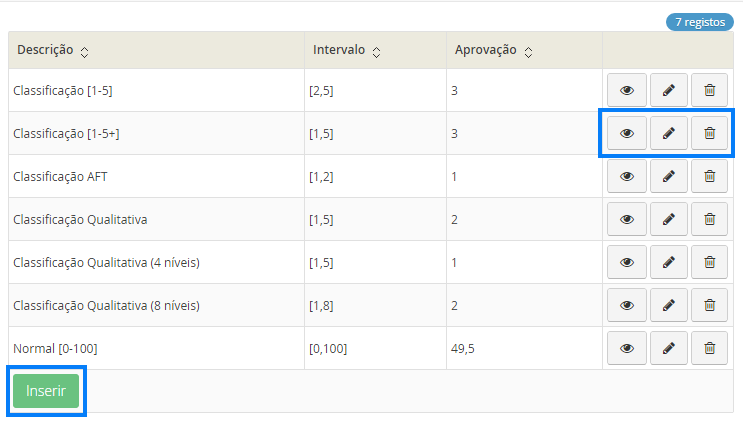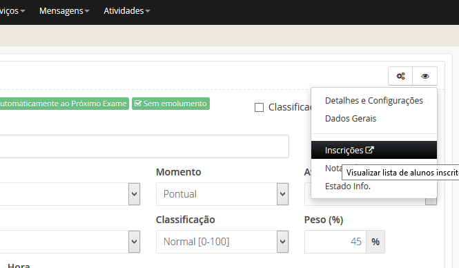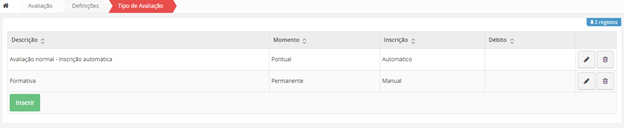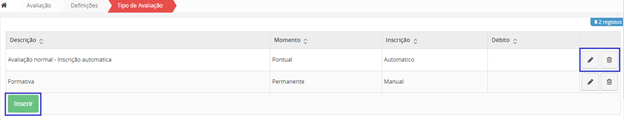 Para editar uma Época de Momento de Avaliação, deverá clicar no botão .