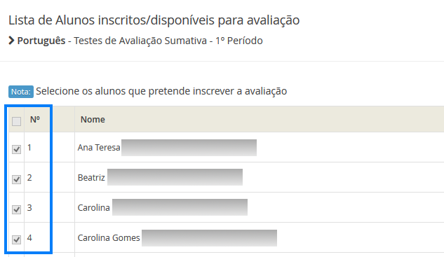 Ao aceder à secção de Épocas de Momentos de Avaliação, encontrará uma lista com todas as épocas de momentos de avaliação disponíveis na plataforma