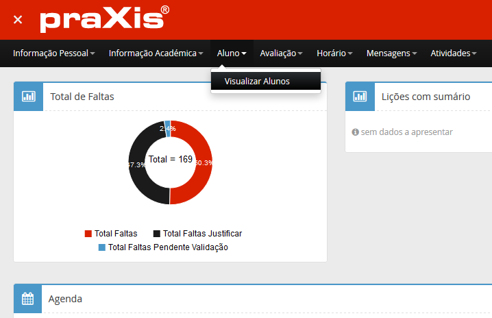 Permite inserir / editar a informação relacionada com os alunos. Nesta opção poderá definir informação como, por exemplo, os detalhes informativos de um aluno, envio de mensagens para os encarregados de educação e marcação de faltas, entre outras opções.