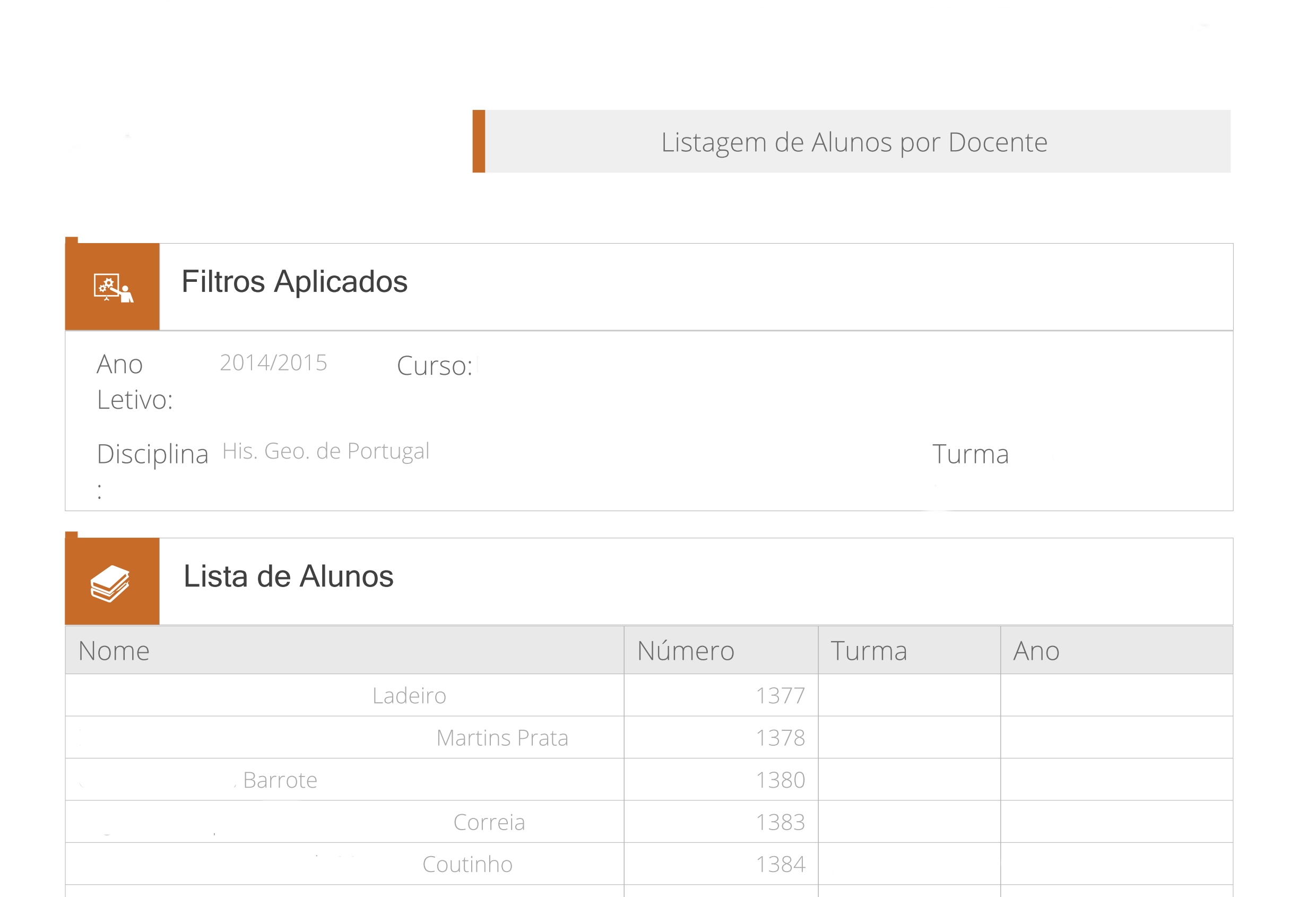 Nota: Para poder exportar uma listagem de alunos para o formato PDF, terá de selecionar todas as opções de filtragem de alunos: Ano Letivo, Nível Escolar e Disciplina.