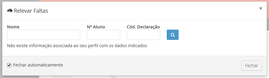 Para pesquisar por detalhes de falta de um determinado aluno, clique no botão de opções, referido no ponto dois, clique na opção “Relevar Falta”.