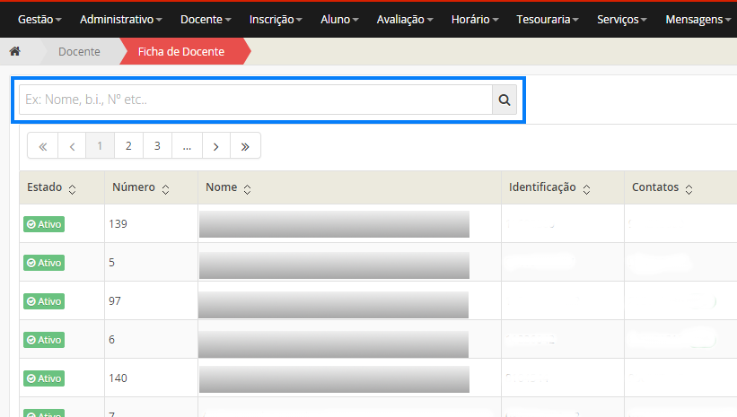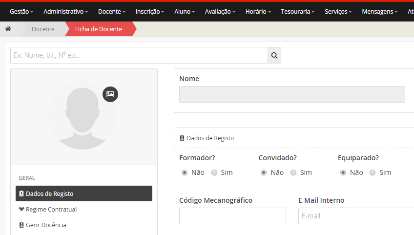 Se pretender editar os dados de um docente, clique no botão .