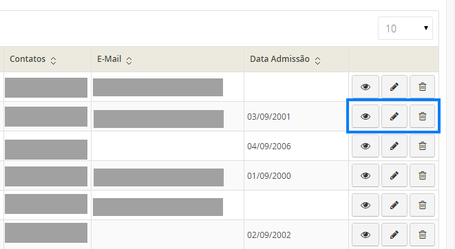 Para eliminar definitivamente um docente da aplicação, clique no botão .