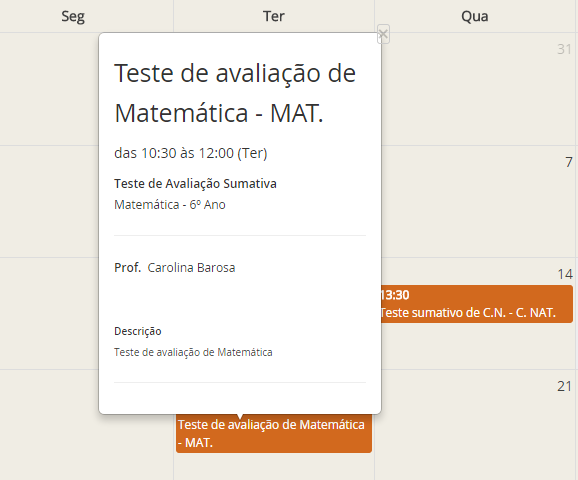 Para consultar os detalhes de uma determinada atividade, clique sobre a mesma e aparecerá uma janela (pop up) com todos os detalhes relativos à atividade (visualize a terceira imagem em baixo).