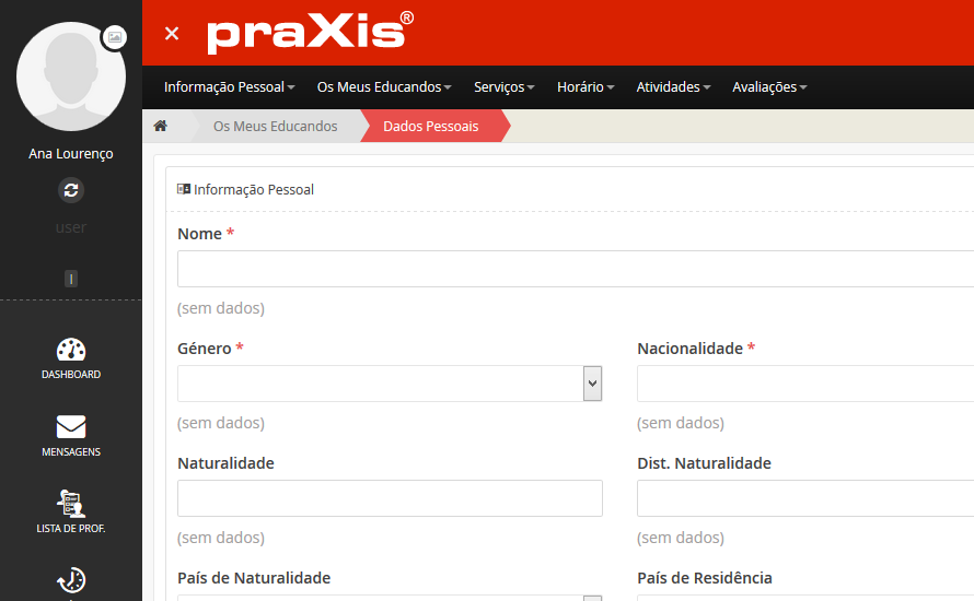 Permite inserir / editar a informação relacionada com os dados pessoais. Nesta opção poderá definir informação como, por exemplo, os detalhes informativos de um educando, os seus dados pessoais, entre outras opções.