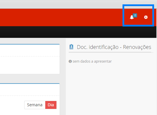Ao efetuar o login na aplicação pode sempre verificar se existe alguma mensagem para si, visualizando o canto superior direito da interface da aplicação.