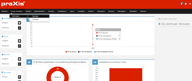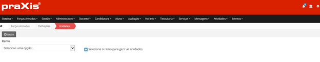 Atenção: ao eliminar uma Especialidade Militar, um Ramo ou um Posto, a eliminação é permanente e sem recuperação possível!