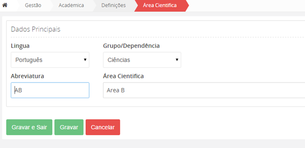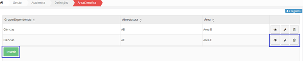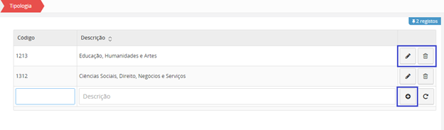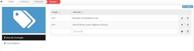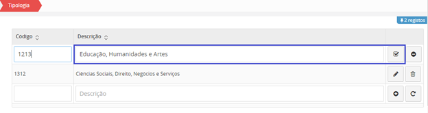 Se pretender editar os dados de um tipo de curso, clique no botão de edição .