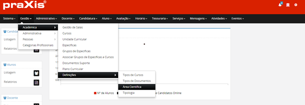 Para eliminar definitivamente um tipo de curso da aplicação, clique no botão de eliminar .