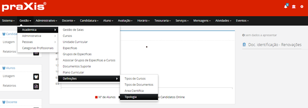 Atenção: ao eliminar um tipo de curso, a eliminação é permanente e sem recuperação possível!