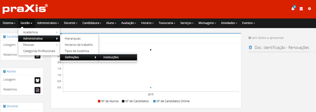 Para eliminar definitivamente uma Instituição da aplicação, clique no botão de eliminar .