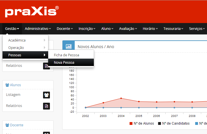 Permite inserir / editar a informação relacionada com a inserção de uma nova pessoa na base de dados. Nesta opção poderá definir informação como, por exemplo, inserção e gestão de pessoas, entre outras opções.