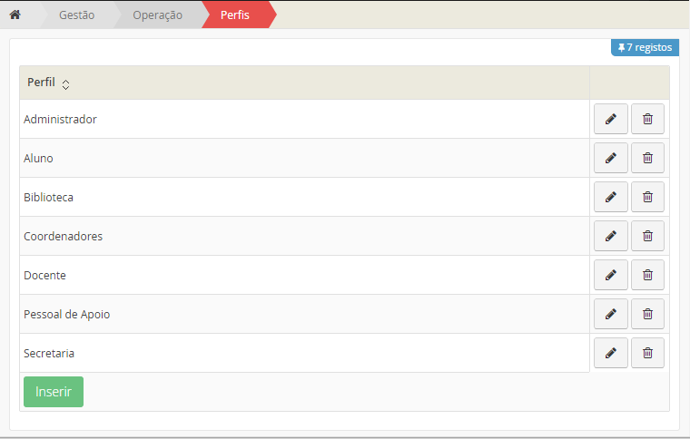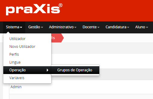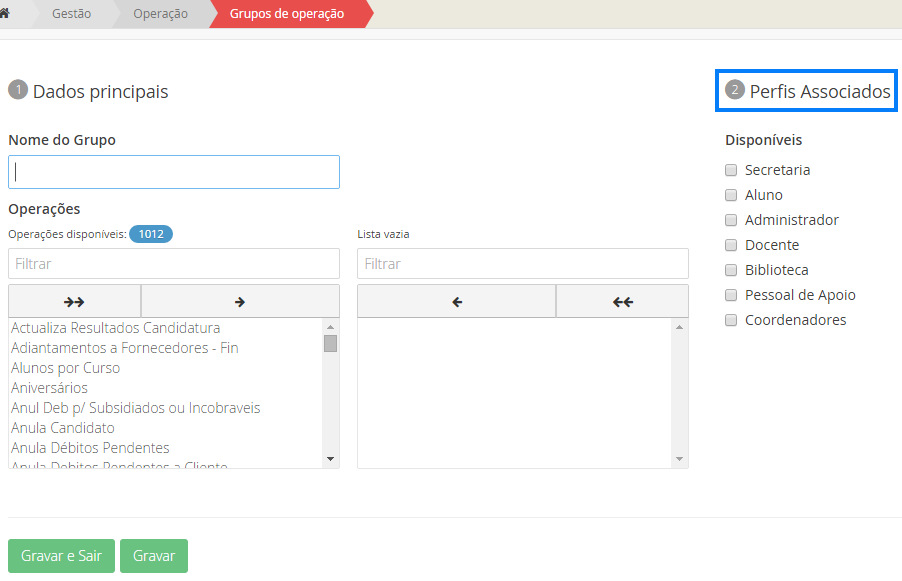 Nesta secção poderá criar um grupo (várias entidades) de operação e atribuir ao mesmo um perfil.