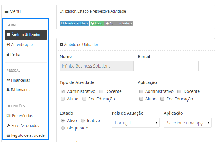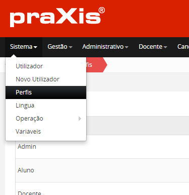 Nota: poderá verificar os perfis atuais que possui, realçado no canto superior direito.